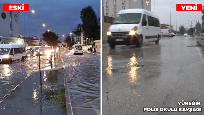 Yüreğir Polis Okulu kavşağında da yeni yapılan hat sayesinde şiddetli yağışlarda yaşanan su baskınları son buldu.