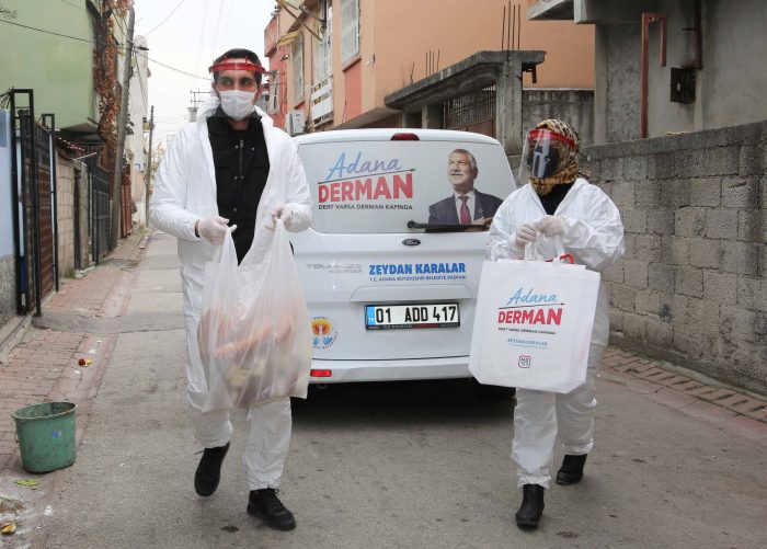 Adana Büyükşehir Belediye Başkanı Zeydan Karalar’ın, testi pozitif çıkıp karantinada kalmak zorunda olan vatandaşların mağdur olmaması için başlattığı kahvaltı ile sıcak yemek dağıtımını Derman ekipleri büyük bir titizlikle sürdürüyor. Koronavirüs testleri pozitif çıkan ve karantinaya giren vatandaşlara, izolasyon sırasında destek vermek amacıyla başlatılan günde iki öğün yemek uygulaması, ihtiyacı olan 65 yaş üzeri Adanalılar için de hayata geçiriliyor. Adana Büyükşehir Belediyesi, ortalama 5 bin Adanalıya, günlük iki öğün yemek ulaştırıyor.