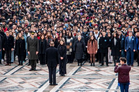 “Büyük Önder Atatürk, bugün karşında; bir kimsenin lütfuna terk edilmiş kara bir düzenin değil, Cumhuriyet‘in hiç sönmeyecek ateşini yaşamı boyunca taşıyacak, özgür bir memlekette yüzüne memleketin özgür rüzgârları değen, en çok barışa ve hiç durmadan ilerlemeye inanan aydınlık kuşakların fertleri olarak bulunuyoruz.