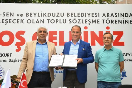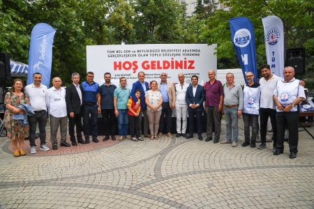 Beylikdüzü Belediyesi, KESK’e bağlı Tüm Belediye ve Yerel Yönetim Emekçileri Sendikası (Tüm-BEL-SEN) ile Toplu İş Sözleşmesine imza attı. Belediye binası bahçesine gerçekleşen törene Beylikdüzü Belediye Başkanı Mehmet Murat Çalık, Tüm BEL-SEN Genel Başkanı Erdal Bozkurt ve Tüm-BEL-SEN 1Nolu Şube Başkanı İbrahim Sönmez’in yanı sıra başkan yardımcıları, birim müdürleri ve emekçi belediye personelleri katıldı. Genel Başkan Bozkurt, toplu sözleşme imza töreni öncesinde yaptığı konuşmada, Beylikdüzü’nün emek mücadelesinde ayrı bir yeri olduğunu belirterek, “Ekrem Başkanla başlayan süreçte Beylikdüzü’nde iş gücü mesele olduğunda bunun pazarlık konusu dahi yapılamayacağı bir gelenek olarak oturtulmuş. Bugün de Beylikdüzü’nde Murat Başkan’la bu sürecin devam etmesi hepimize büyük mutluluk veriyor. Toplu sözleşmede emeği geçen ve komisyonda olan herkese teşekkür ediyorum.” ifadelerini kullandı. Şube Başkanı Sönmez ise burada yaptığı konuşmada, kamu emekçilerinin ekonomik şartlarını düzelten bir sözleşme olduğunu ifade ederek, imzalanan toplu sözleşmenin önemine vurgu yaptı.