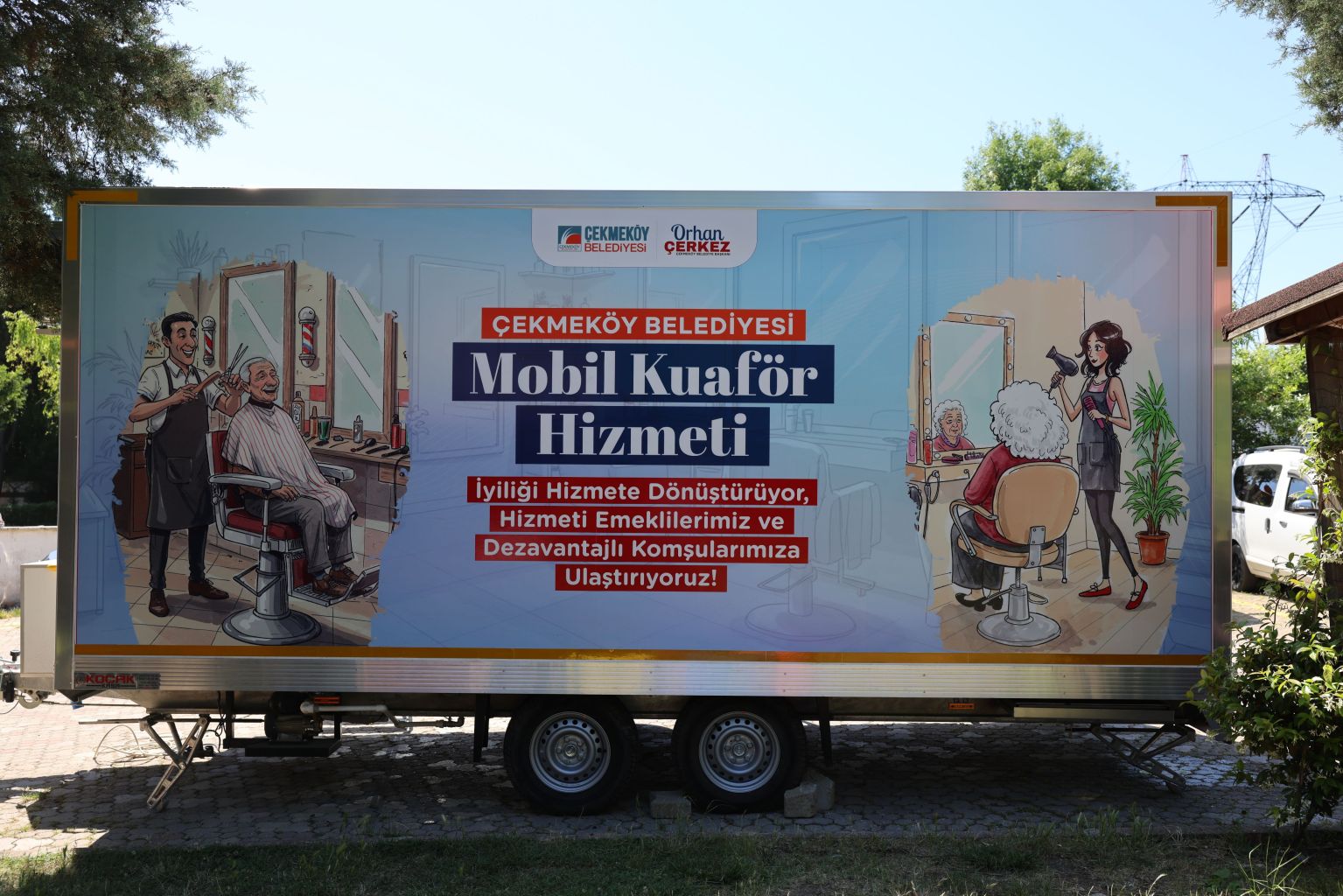 Çekmeköy Belediye Başkanı Orhan Çerkez’in sosyal belediyecilik anlayışıyla hayata geçirdiği proje vatandaşlar tarafından büyük ilgi gördü. Emekliler ve özel gereksinimli bireylere ücretsiz şekilde hizmet verecek olan mobil kuaför, her hafta bir mahallede olacak.