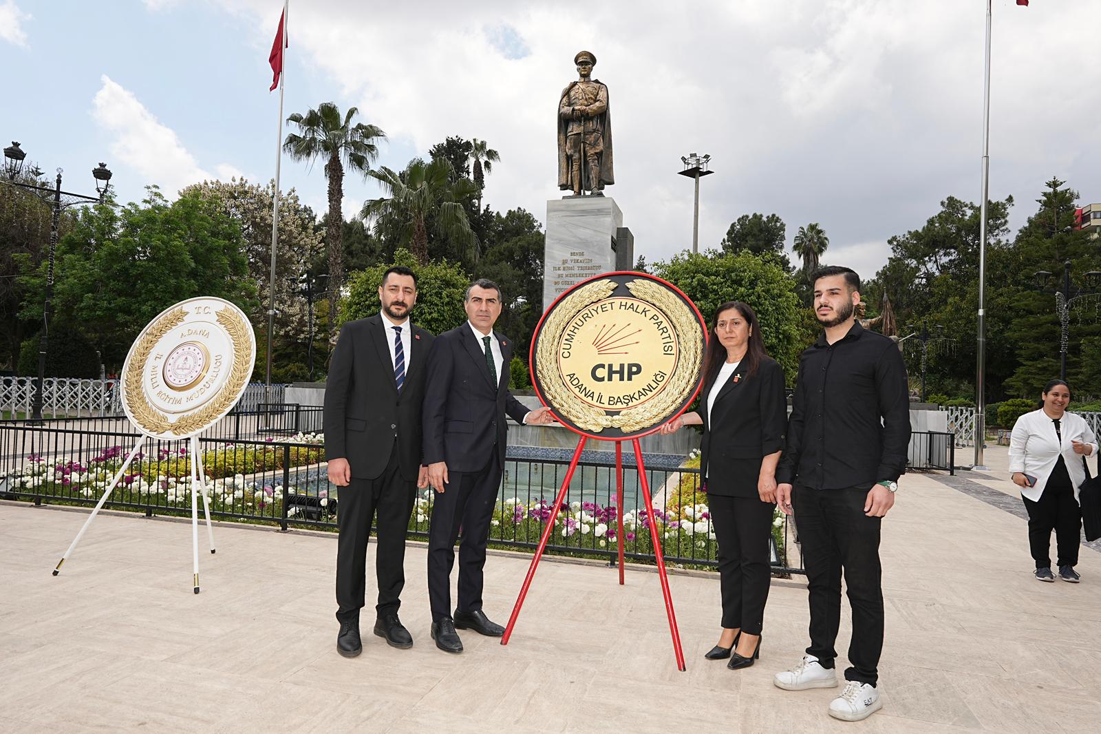 23 Nisan Ulusal Egemenlik ve Çocuk Bayramı çelenk sunumu törenine CHP Adana İl Başkanı Anıl Tanburoğlu, Adana Büyükşehir Belediye Başkan Vekili Güngör Geçer, CHP Adana Milletvekilleri Müzeyyen Şevkin, Ayhan Barut, Orhan Sümer Ve Bilal Bilici, CHP Gençlik Kolları MYK Üyeleri Armağan Baran Özmetin ve Mehmet Şahin Gümüş, Adana Büyükşehir Belediyesi CHP Meclis Grup Başkan Vekili Özgür Altıok, CHP ilçe başkanları, kadın ve gençlik kolları üyeleri, sivil toplum kuruluşu temsilcileri ve Cumhuriyet Halk Partililer katıldı.