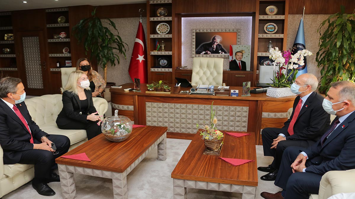 CHP Genel Başkanı Kemal Kılıçdaroğlu, Koronavirüs tedavisinin ardından akciğerlerinde oluşan hasar nedeniyle 64 gün kaldığı yoğun bakımdan geçtiğimiz gün yataklı servise alınan Antalya Büyükşehir Belediye Başkanı Muhittin Böcek’i ziyaret etti. CHP Genel Başkanı Kemal Kılıçdaroğlu, ilk olarak Akdeniz Üniversitesi Rektörü Prof. Dr. Özlenen Özkan’ı makamında ziyaret ederek, Büyükşehir Belediye Başkanı Muhittin Böcek’in sağlık durumu hakkında bilgi aldı.