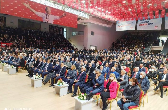 İl Başkanı Mehmet Çelebi’den sonra söz alan CHP Grup Başkan Vekili Özgür Özel’de Genel Başkanı Kemal Kılıçdaroğlu’ nun dünya siyaset tarihinin en uzun ve en kapsamlı adalet yürüyüşünü gerçekleştirdiğini söyleyip, 31 Mart seçiminde 11 büyükşehri kazandıklarını söyledi. Olası bir erken seçimde veya zamanında yapılırsa 2023 seçimlerinde de başarı sağlayacaklarını kaydeden Özel, “Hiç kimseyi, hiçbir seçmeni dışlamadan ve seçmenin oyuyla gelmiş hiçbir partiyi dışlamadan hep beraber, omuz omuza, kucak kucağa geleceği doğru yürüyoruz. Bundan sonraki süreçte de Türkiye için en doğrusunu hep birlikte yapacağız” dedi.
