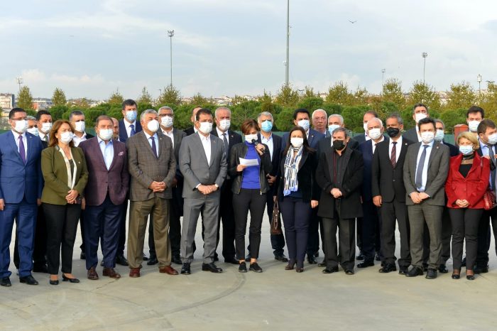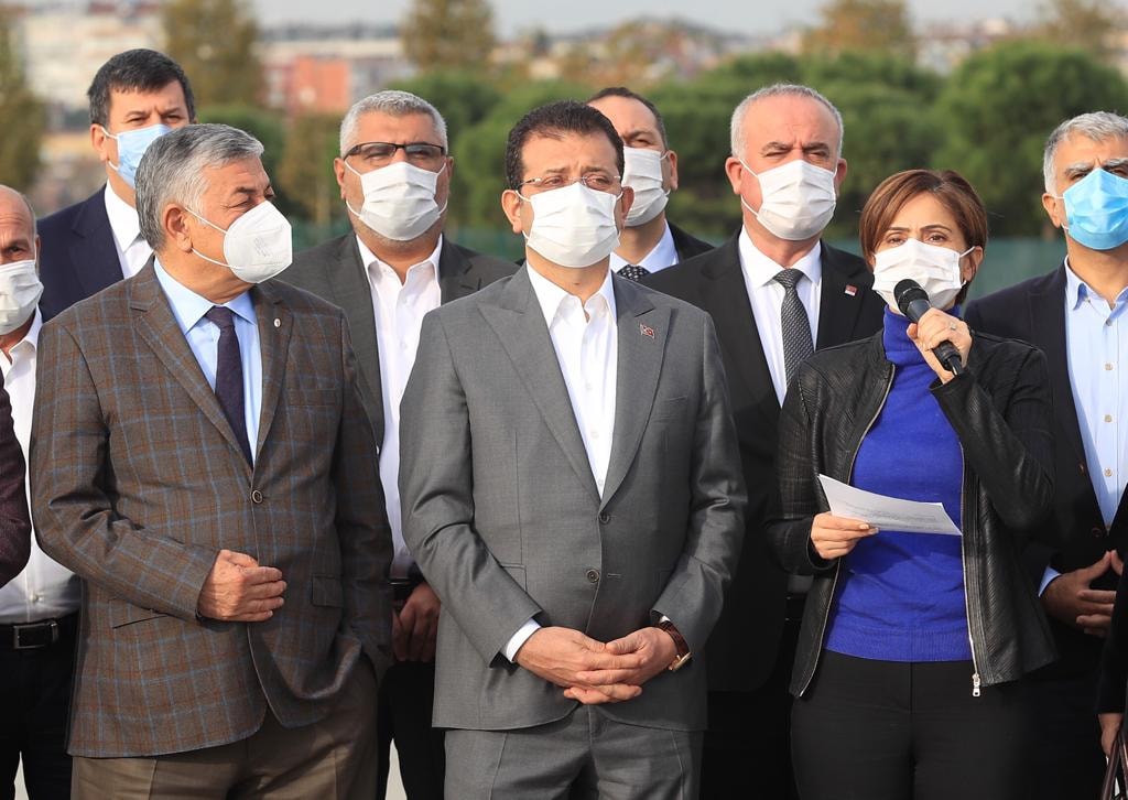 CHP İstanbul İl Başkanı Canan Kaftancıoğlu, İBB Belediye Başkanı Ekrem İmamoğlu, partinin ilçe başkanları ve ilçe belediye başkanları tam kadro kameraların karşısına geçti.