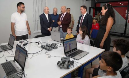 Atakum Belediyesi Hasan Ali Yücel Gençlik, Bilim ve Sanat Merkezi içerisinde yer alan ahşap, alüminyum ve pvc, gastronomi, baskı ve reklam, robotik kodlama gibi atölyeleri tek tek dolaşan CHP Lideri Kılıçdaroğlu burada yapılan çalışmalar hakkında bilgi aldı. Merkezin giriş katında bulunan ve Atakum Belediyesi’nin öncülüğünde kurulan Atakum Kadın Girişimi, Üretim ve İşletme Kooperatifi’nin (ATAK) satış mağazasını da ziyaret eden Kılıçdaroğlu, üretici kadınlardan kooperatif çalışmalarını dinledi. “Kadın kooperatiflerine güveniyoruz” diyerek kadın üreticilerinin çalışmalarının değerli olduğunu söyleyen Kılıçdaroğlu üretici kadınlara başarılar diledi. Kılıçdaroğlu daha sonra merkezin en üst katında bulunan ve gençlerin yoğun olarak ders çalıştığı kütüphaneyi de ziyaret ederek gençlere başarı dileklerini iletti. Terasta kendisini bekleyen gençlerle de bir araya gelen Kılıçdaroğlu yoğun ilgiyle karşılandı.