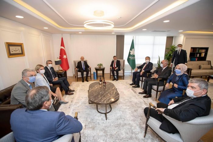 CHP lideri Kılıçdaroğlu, Gelecek Partisi Genel Başkanı Davutoğlu’nu ziyaret etti. Ziyaret sonrası iki genel başkan açıklama yaptı. CHP Genel Başkanı Kemal Kılıçdaroğlu, Gelecek Partisi Genel Başkanı Ahmet Davutoğlu’na ‘hayırlı olsun’ ziyareti gerçekleştirdi.