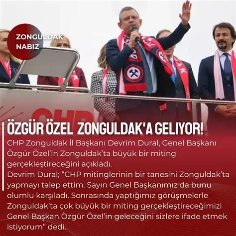 Zonguldak’taki miting Maden Anıtı önünde yapıldı. Alan Türk bayrakları, Atatürk, Özgür Özel ve İmamoğlu posterleriyle donatıldı. “İmamoğlu’na Özgürlük” ve “Millet İradesine Sahip Çıkıyor” yazılı pankartlar asıldı. Ferdi Zeyrek anısına “Unutmayacağız” yazılı pankart ile Bülent Ecevit’in “Ne ezen ne ezilen insanca hakça bir düzen” sloganının yer aldığı afiş de miting alanında.