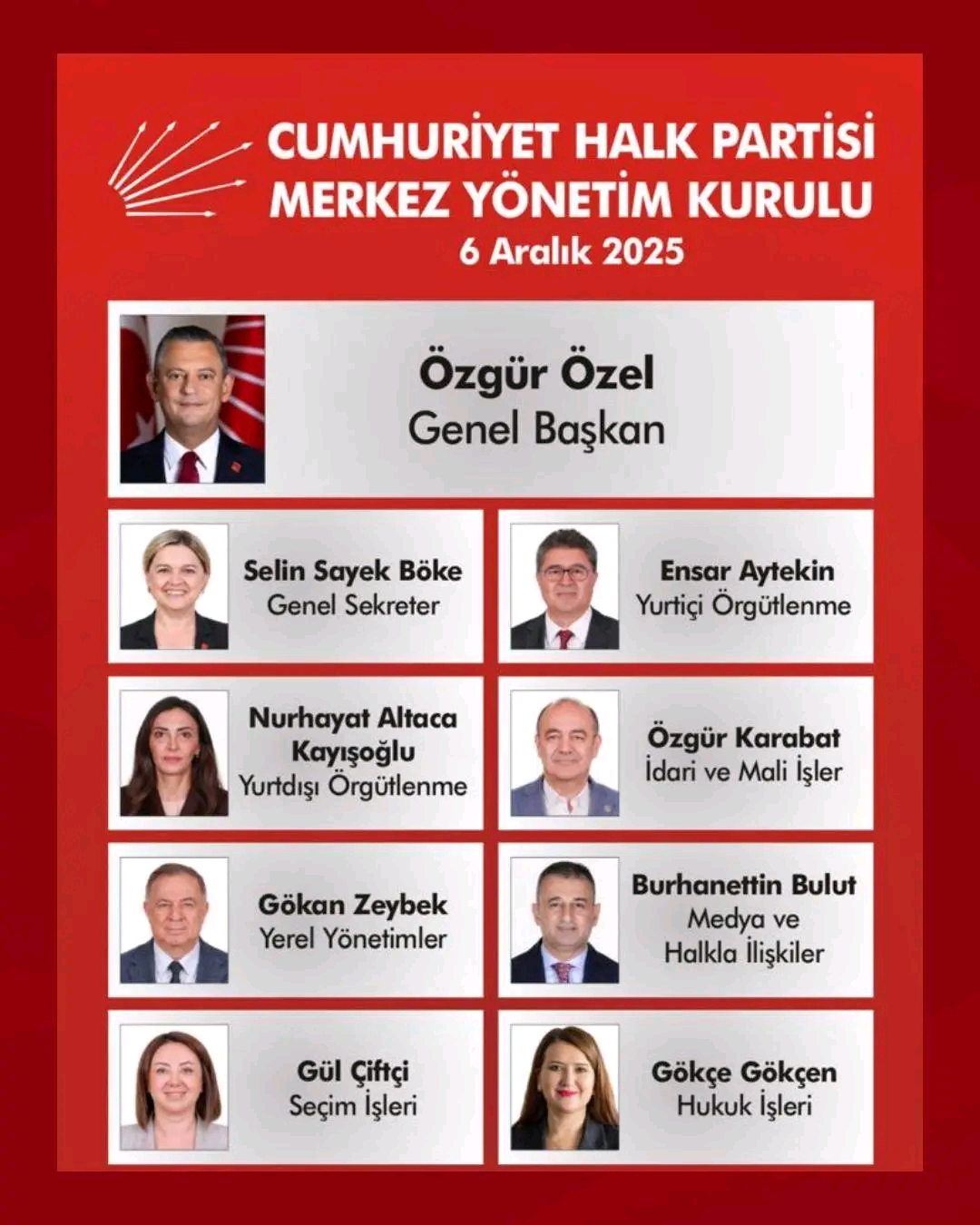 Genel Başkan Özgür Özel’in 18 kişiden oluşan yeni MYK’si şu isimlerden oluştu: