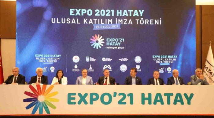 İmza töreninde EXPO’nun Hatay’ın değil Türkiye’nin projesi olduğunu söyleyen Lütfü Savaş, destek veren tüm belediye başkanlarına teşekkür etti. AHA.