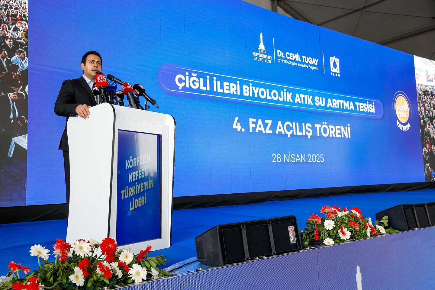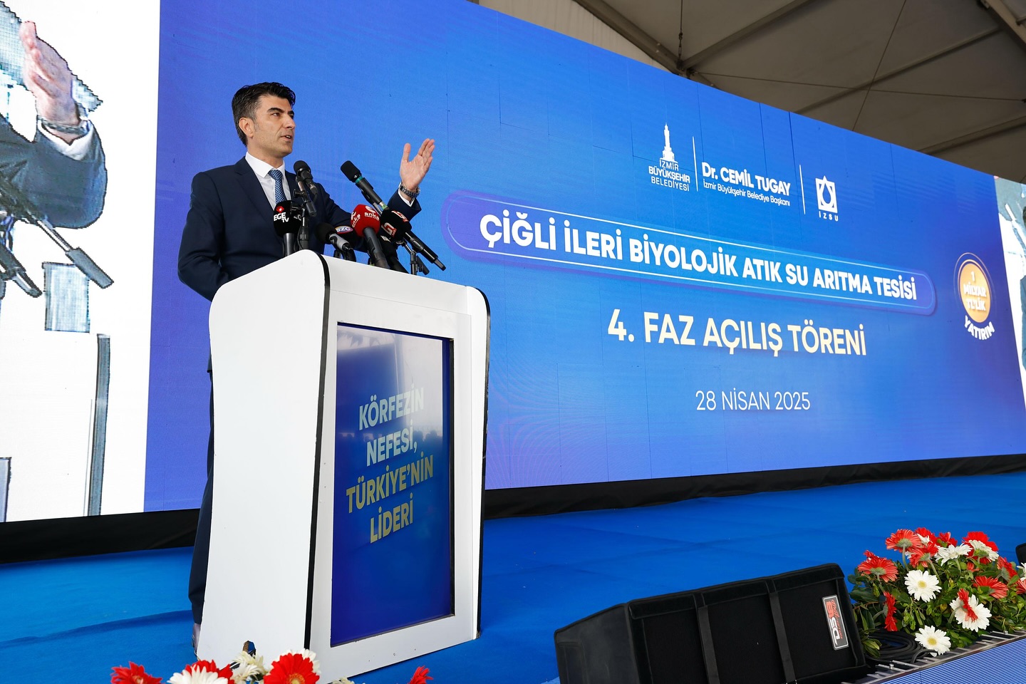 İzmir Büyükşehir Belediye Başkanı. Dr. Cemil Tugay: Söz verdiğimiz gibi kendi öz kaynaklarımız ile 1 yılda Çiğli Atık Su Arıtma Tesisimizin 4’üncü fazını hizmete açtı.