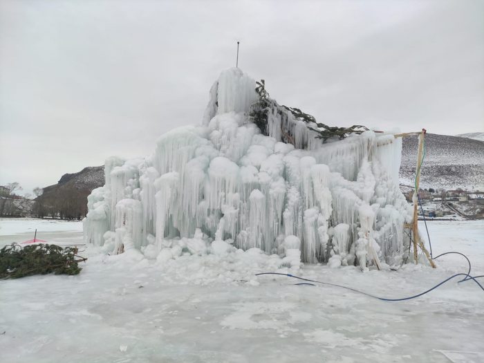 “Çıldır Buz Şehri Projesinin” simgesi olan ve donarak yükselmeye devam eden “Çıldır Buz Kulesi” ile muhteşem bir görüntü oluştu. Çok sayıda turist gün içerisinde proje alanını ziyaret ederek buz kulesi önünde fotoğraf çektiriyor.