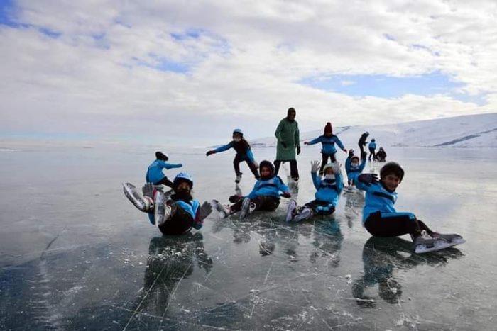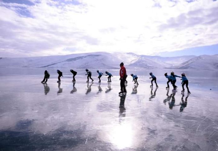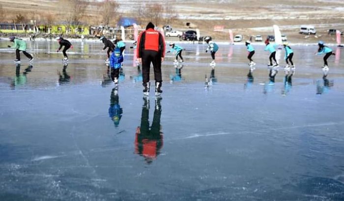 Dünyanın 8. Harikası olmak kadar güzellikler taşıyan Çıldır Gölü, Doğallığıyla bir tablo gibi Türkiye’nin en büyük doğal buz pisti Çıldır Gölümüzün o görsel güzelliğe sahip tabloya imza atar gibi inadına mavi buzların üstünde çemberler çizerek kendi doğallıklarında Türkiye Buz Patenti yarışlarına hazırlanmak için antrenman hazırlıklarını Çıldır gölü üzerinde yaptıkları hazırlık çalışmaları dünya basınında yer bulması Çıldır Gölü’nün güzelliğini de veriyor insanımıza..