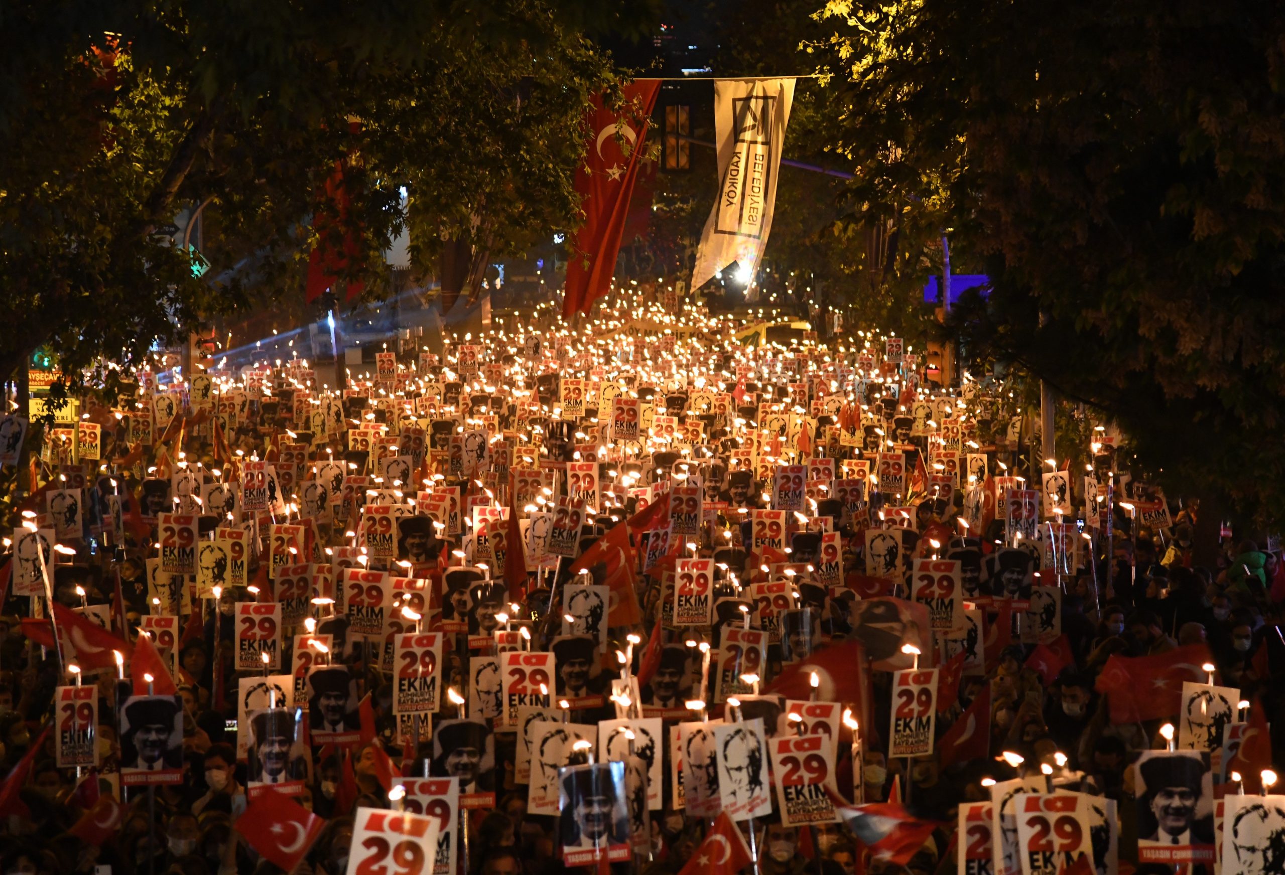 Cumhuriyetimizin 100. yıl dönümü, Kadıköy’de büyük bir coşkuyla kutlanmaya devam ediyor. Bağdat Caddesi’nde düzenlenen Cumhuriyet yürüyüşleri ile her yıl 29 Ekim kutlamalarının merkezi haline gelen Kadıköy, Cumhuriyetimizin 100. yıl dönümünde ise daha coşkulu kutlamalara ev sahipliği yapmaya hazırlanıyor. Kadıköy Belediyesi tarafından günler öncesinden başlayan Cumhuriyet etkinlikleri, 29 Ekim’de gerçekleştirilecek iki büyük kutlama programıyla 100. yıl coşkusunu doruğa çıkaracak.