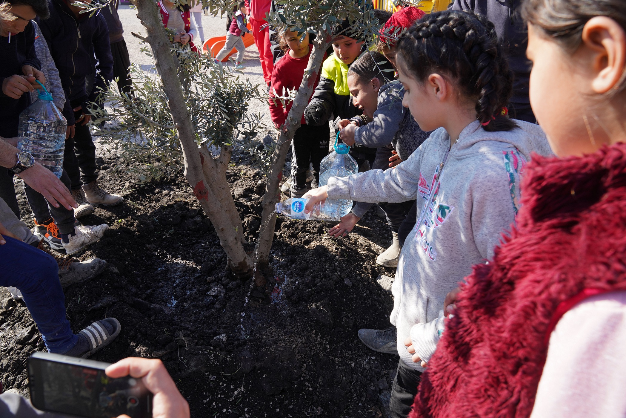 Beylikdüzü Belediyesi’nin Beylikdüzü Kaymakamlığı iş birliğiyle Hatay’da kurduğu çadır kentte peyzaj düzenlemeleri de başladı. Ağaçlandırma çalışmaları kapsamında 50 adet zeytin ağacının ilk etapta 10 tanesinin dikimi çadır kentte yaşayan çocuklarla birlikte gerçekleştirildi. Zeytin ağaçlarının dikileceği alana Dayanışma ve Dostluk Parkı adı vereceklerini belirten Beylikdüzü Belediye Başkanı Mehmet Murat Çalık, “Diktiğimiz zeytin ağaçları yaşamı ve umutları filizlendirecek; çocuklara ve afetzedelere nefes olacak” dedi.