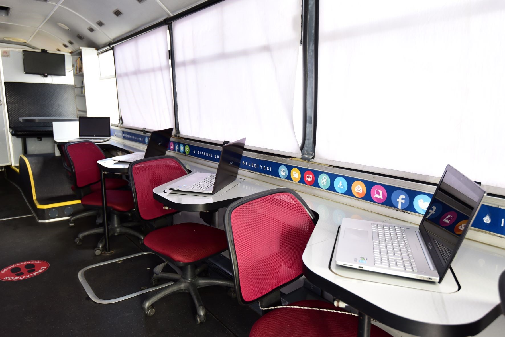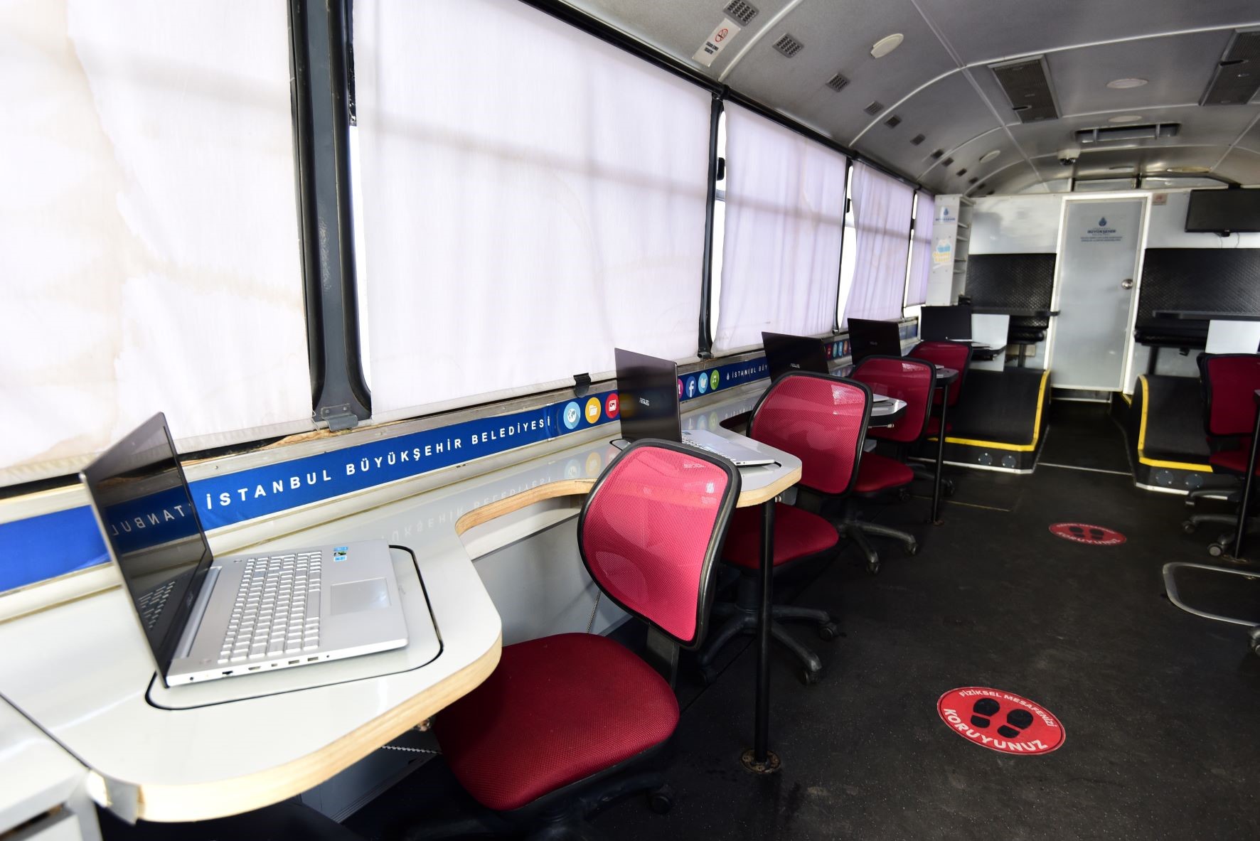 Mobil Ders Atölyesi çalışmaları kapsamında, işlenecek eğitim programı öğrencilerin ihtiyacına ve eksik kaldıkları konulara göre belirlendi. Öğrenciler, gönüllü öğretmenlerden aldıkları yüz yüze eğitimin yanı sıra mobil otobüsteki bilgisayarlarla ibbonlinedersatolyeleri.istanbul adresine girerek yapay zeka destekli online eğitim çalışmalarına da dahil olabiliyor.