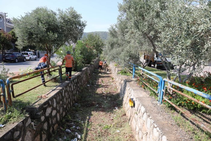 Marmaris Belediyesi, yaklaşan yağmur mevsimi öncesinde dere yataklarına yönelik kapsamlı bir çalışma başlattı. Çalışmalar kapsamında dere içindeki yabani otlar temizleniyor, evsel atıklar toplanıyor, bozulan noktalar tamir ediliyor.