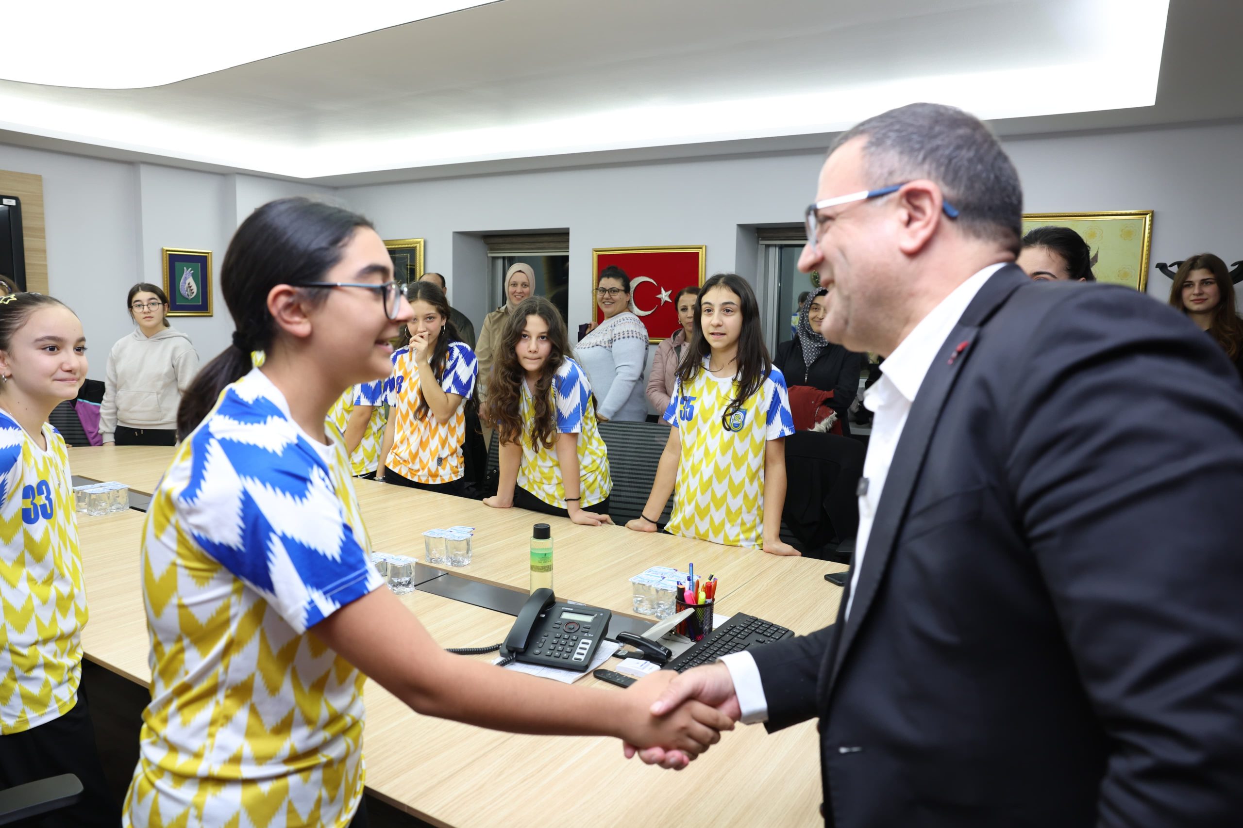 Derince Belediye Başkanı Av. Sertif Gökçe, Midi Kızlar Voleybol Gelişim Ligi’nde şampiyonluk kupasını kazanan Derincesporlu sporcuları konuk etti