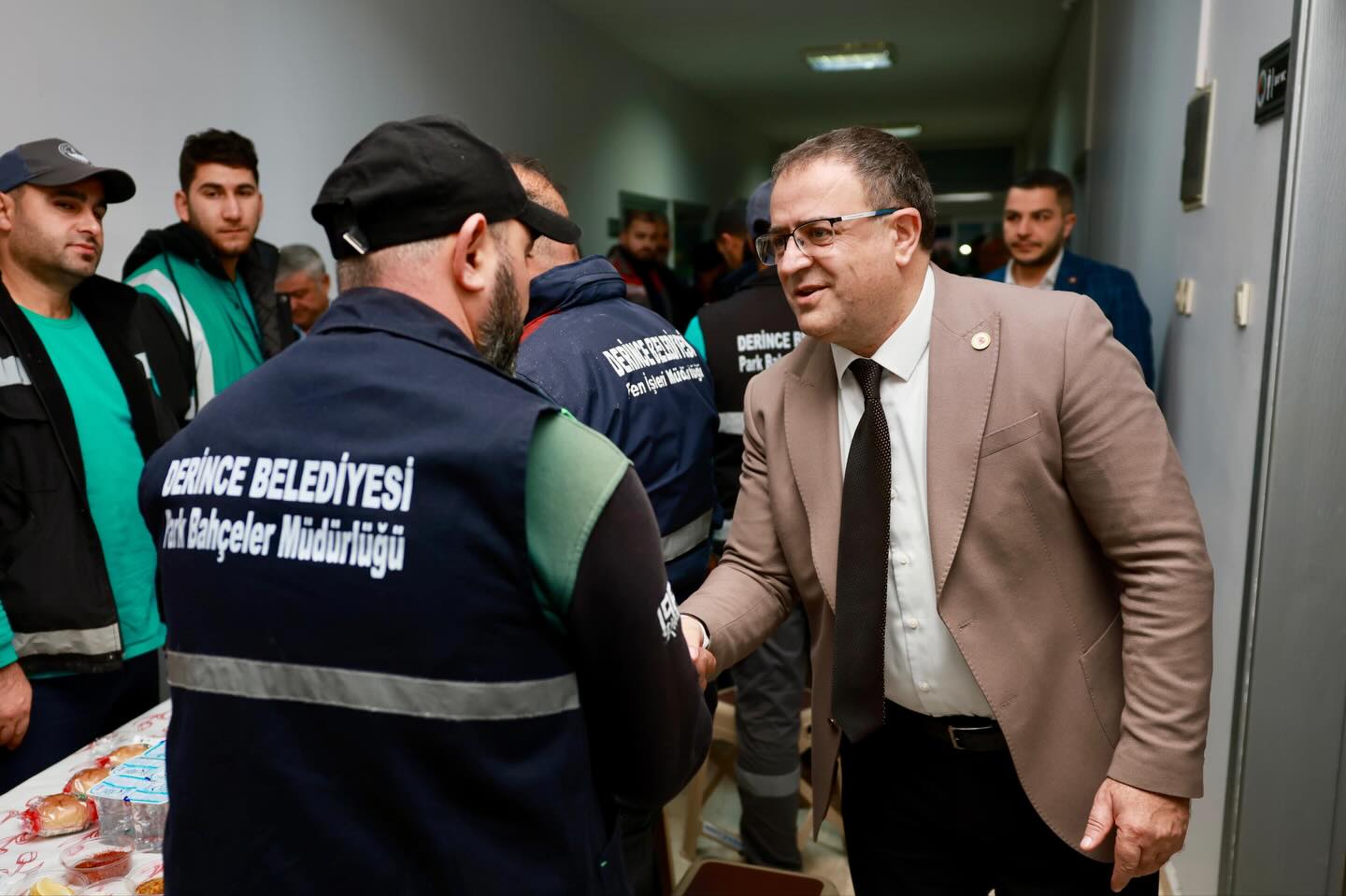 Derince Belediye Başkanı Av. Sertif Gökçe, daha yeşil ve güzel bir çevre oluşturmak için çalışmalarını yoğun bir şekilde sürdüren Park ve Bahçeler Müdürlüğü emekçileriyle kahvaltı programında bir araya geldi. Çalışanlara kahvaltıya katılımları ve özverili çalışmaları dolayısıyla teşekkür eden Başkan Gökçe, “Her gün Derince’miz için alın teri döken tüm çalışma arkadaşlarımıza gönülden teşekkür ediyorum. Birlikte çalışmaya, üretmeye ve Derince’mizi daha da güzelleştirmeye devam edeceğiz” dedi.