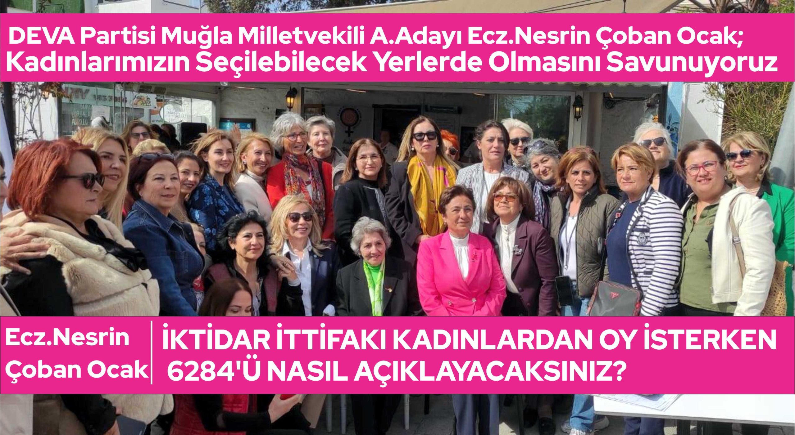 DEVA Partili Ecz. Nesrin Çoban Ocak Bodrum Bitez Kadınlar Kahvesinde Muğla’nın Kadın Milletvekillerinin tanıtıldığı ve mecliste %17 olan Kadın temsiliyetinin az olduğunu ve bu oranın yükselmesi için Tüm siyasi parti liderlerine çağrı yapılarak kadınların listelerde seçilebilecek yerlerde olması için farkındalık yaratmak için yapılan toplantı da yer aldı.