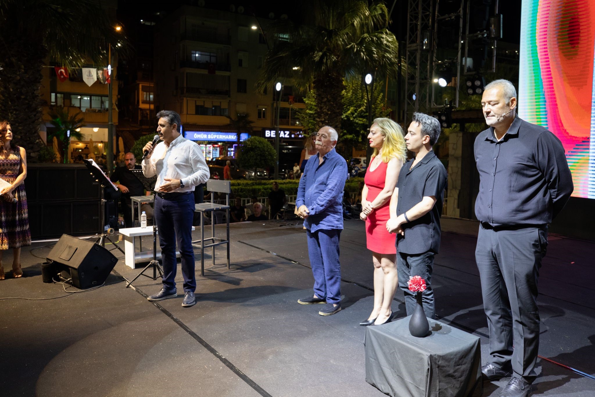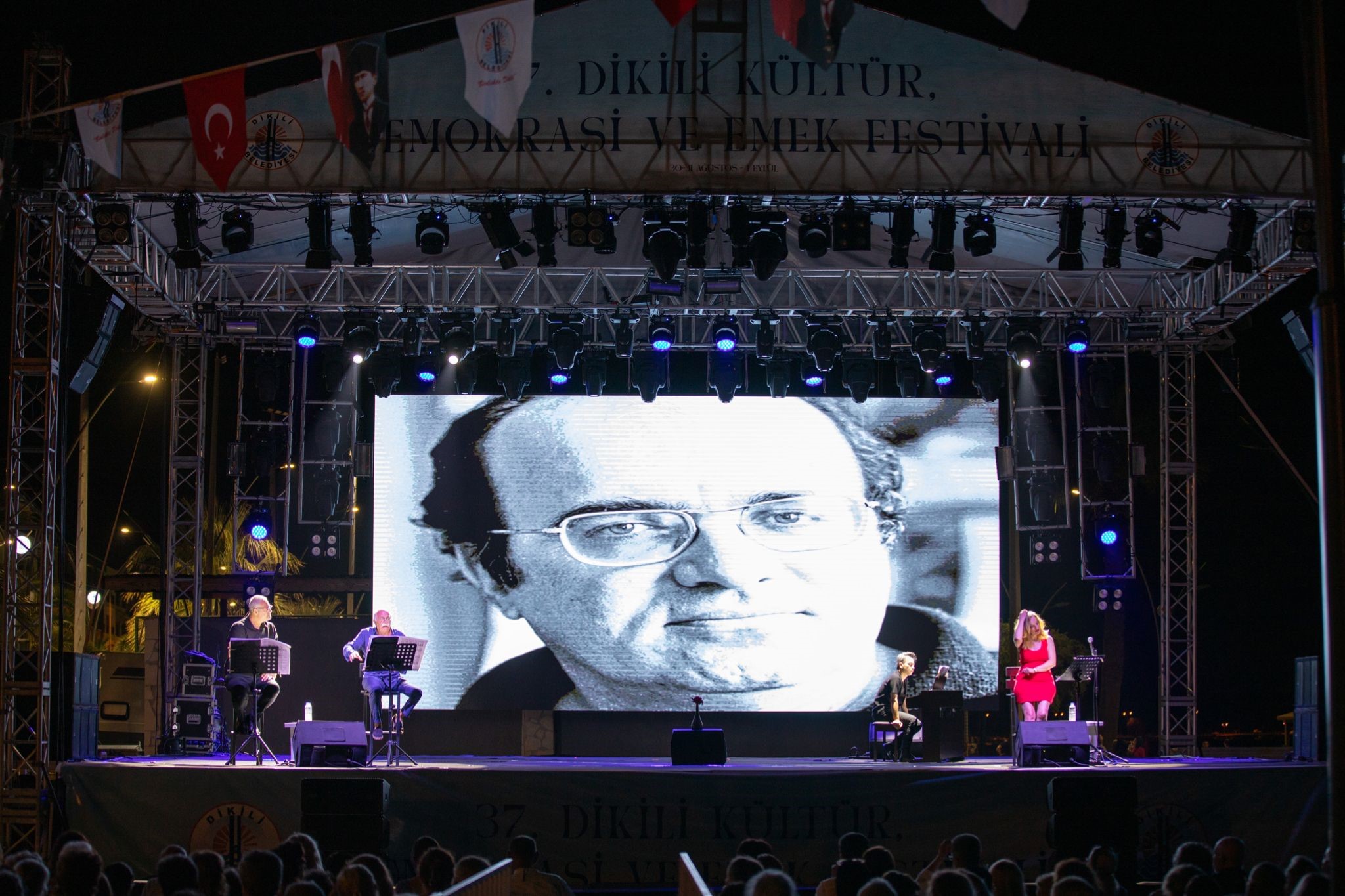 - Dikili Kültür, Demokrasi ve Emek Festivali’nin dolu dolu geçtiğini belirten Dikili Belediye Başkanı Adil Kırgöz, “ Festivalimizin son gününde 30 yıl önce yitirdiğimiz değerli aydınımız araştırmacı, gazeteci, yazar Uğur Mumcu’yu Dikili’mizde anıyoruz. Bu bizim için çok anlamlı. Bu güzel oyunu sahneleyen Levent Üzümcü Tiyatrosu’na çok teşekkür ediyorum. Uğur Mumcu, gerçek bir Atatürkçü, gerçek bir Cumhuriyetçi, gerçek bir yurtseverdi. Cesareti ve mücadelesi ışık olmaya devam edecek. Bugün ayrıca 1 Eylül Dünya Barış Günü, bizler de Ulu Önderimiz Gazi Mustafa Kemal Atatürk’ün ‘Yurtta Barış, Dünyada Barış’ sözünü ilke ve rehber edinerek kararlı adımlarla ilerlemeye devam edeceğiz.” dedi.