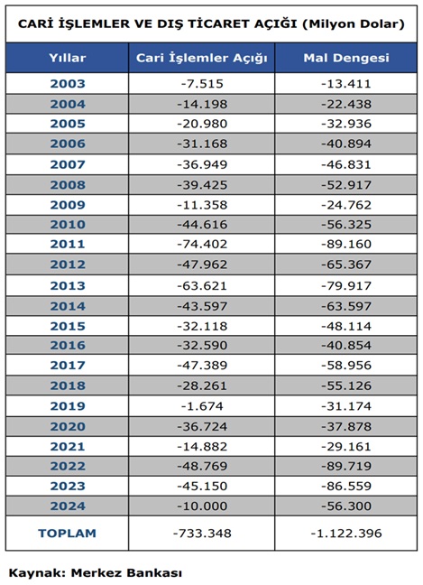 Türkiye 2002 yılında çok az, 0,2 milyar dolar cari açık verdi ve fakat sonrasında AK parti iktidarının ilk yılında 2003 yılında, 7,5 milyar cari açık verdi.