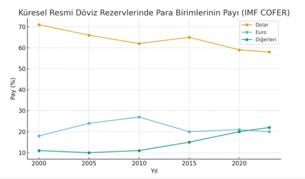 ABD Doları, halen dünyanın rezerv parası konumundadır. Küresel ticaretin yaklaşık yüzde 60’ı, merkez bankası rezervlerinin yüzde 58’i dolar cinsindendir. 20 sene önce dünyada rezervler içindeki payı yüzde 70 iken son yıllarda yüzde 58 dolayına geriledi. Buna karşılık rezervler içinde diğer paraların payı arttı. (Aşağıdaki tablo)