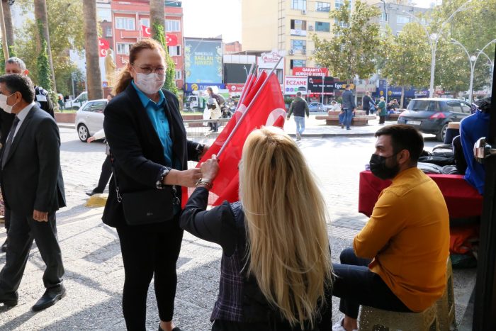 Edremit Kuyumcular Çarşısı esnafını ziyaret eden belediye yönetimi Türk Bayrağı armağan ederek, esnafın sorunlarını dinledi.  Esnafın her zaman yanında olduklarını belirten Başkan Vekili Nezahat Salon, “Meclis üyesi ve birim müdürü arkadaşlarımızla esnafımızı ziyaret ettik. Esnafımızın sorunlarını ve taleplerini dinledik. Edremit Belediye Başkanımız Selman Hasan Arslan öncülüğünde esnafımızın yanında olmaya devam edeceğiz. 29 Ekim öncesi dolayısıyla da şanlı bayrağımızı esnaflarımıza armağan ettik. 29 Ekim’de tüm Edremitlileri camlarına, balkonlarına, dükkânlarına bayrak asmaya davet ediyoruz. Cumhuriyetimizin 97. yılı şimdiden kutlu olsun” dedi.