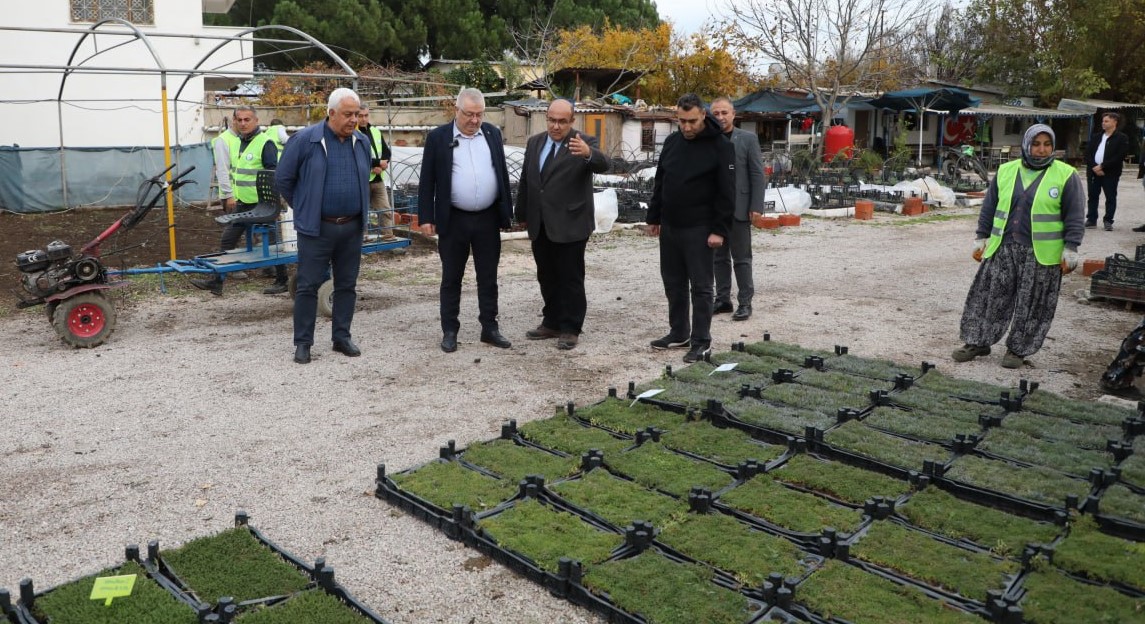 Edremit Belediye Başkanı Mehmet Ertaş, Edremit Ziraat Odası Başkanı Ali Yılmaz Diker ile birlikte fidanlığı ziyaret ederek çalışmaları yerinde inceledi.