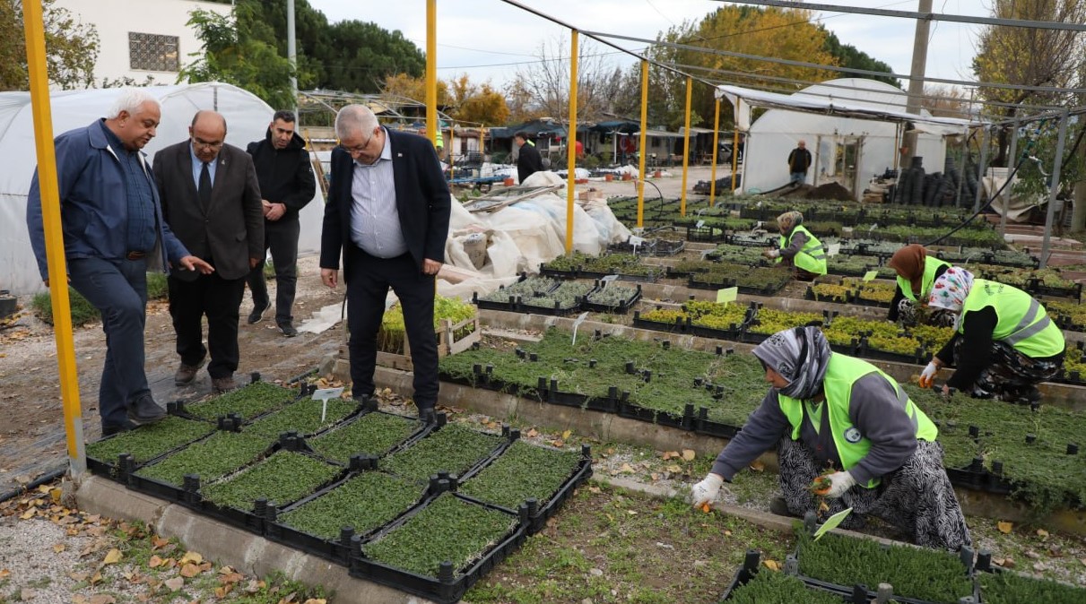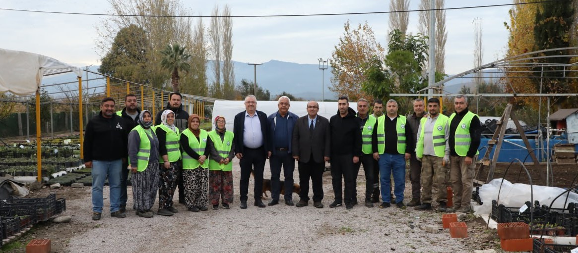 Edremit Belediye Başkanı Mehmet Ertaş, Edremit Ziraat Odası Başkanı Ali Yılmaz Diker ile birlikte fidanlığı ziyaret ederek çalışmaları yerinde inceledi.