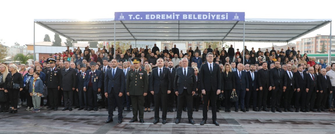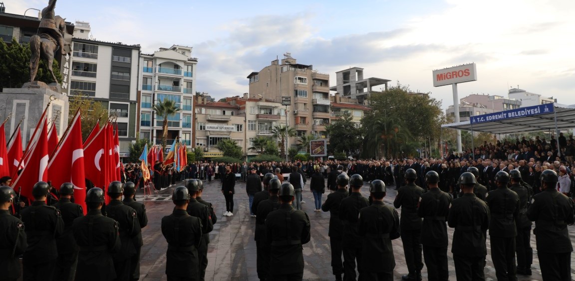 Edremit’te gerçekleştirilen çelenk sunma törenine Edremit Kaymakamı Ahmet Odabaş, CHP Genel Başkan Yardımcısı ve Balıkesir Milletvekili Ensar Aytekin, 19. Komando Tugayı Komutanı Tuğgeneral Ergün Fidan, Edremit Belediye Başkanı Mehmet Ertaş ve Edremit Cumhuriyet Başsavcısı Medet Akcan katıldı. Sirenlerin çalmasıyla birlikte tüm kentte Ulu Önder’in anısına saygı duruşunda bulunuldu.