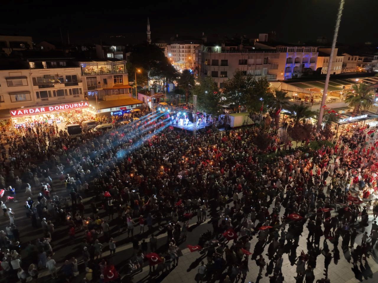Edremit Belediyesi’nin 30 Ağustos Zafer Bayramı kutlamalarında düzenlediği fener alayına binlerce kişi katıldı. Kurtuluşu simgeleyen meşalelerle coşkulu kalabalık marşlar eşliğinde Akçay Cumhuriyet Meydanı’na yürüdü.