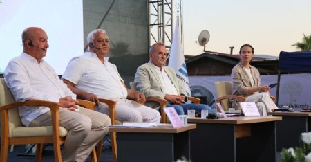 Söyleşinin ardından konuklara Edremit Belediye Başkanı Selman Hasan Arslan, plaketlerini takdim etti.