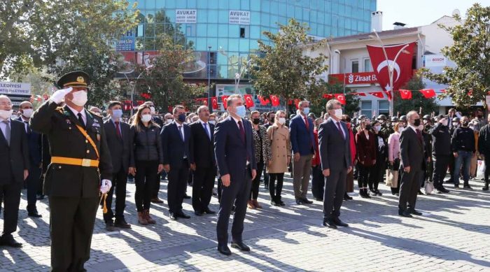 Edremit ilçesinde 29 Ekim Cumhuriyet Bayramı’nın 98. yıl dönümü kutlamaları, düzenlenen çelenk sunma töreniyle başladı.