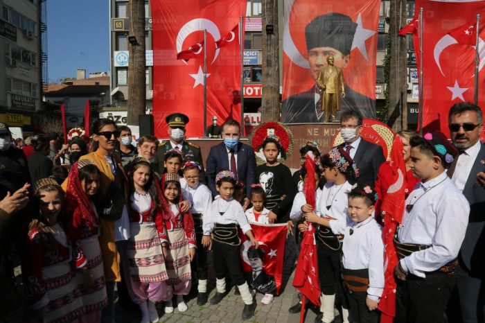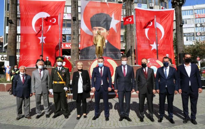 Kaymakam Odabaş, Garnizon Komutanı Canbey ve Belediye Başkanı Arslan tarafından Atatürk Anıtı’na çelenk sunulmasının ardından saygı duruşu ve İstiklal Marşı’nın okunması ile tören sona erdi.