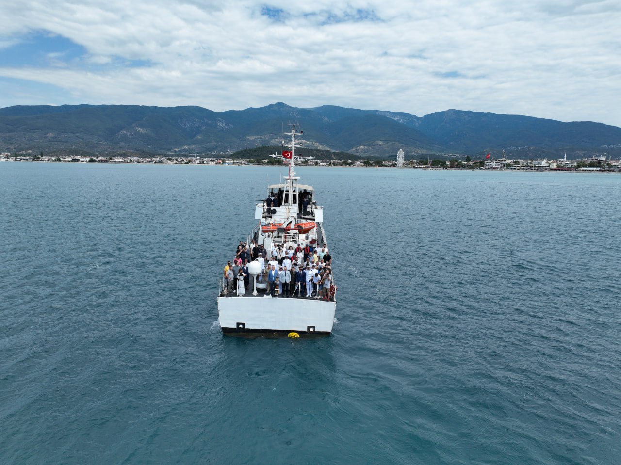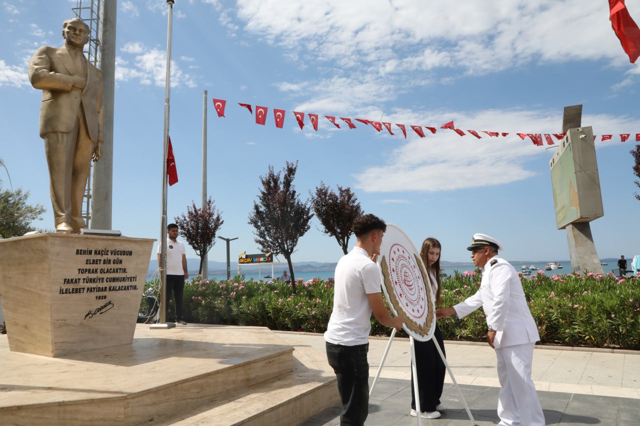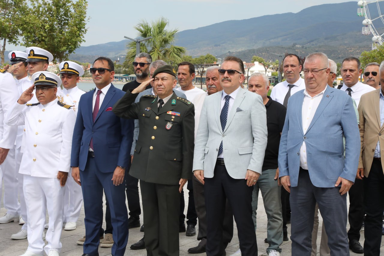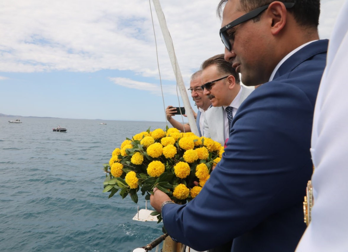 Tören, Atatürk Anıtı’na çelenk sunulmasıyla başladı. Ardından Sahil Güvenlik Komutanlığı’na ait botla Akçay sahilinden denize açılarak, deniz şehitleri anısına denize çelenk bırakıldı.