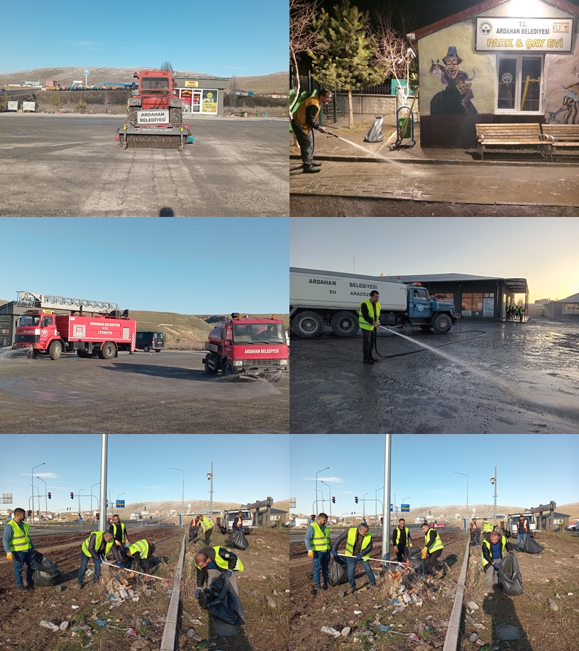 Ardahan Belediyesi Temizlik İşleri Müdürlüğü ekipleri, şehirlerarası terminal ve çevresi ile lise caddesindeki Atatürk Parkında temizlik çalışması yaptı.