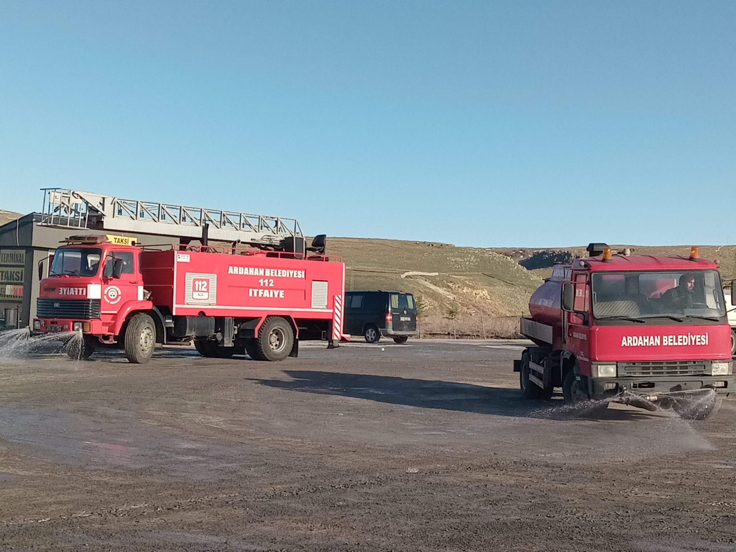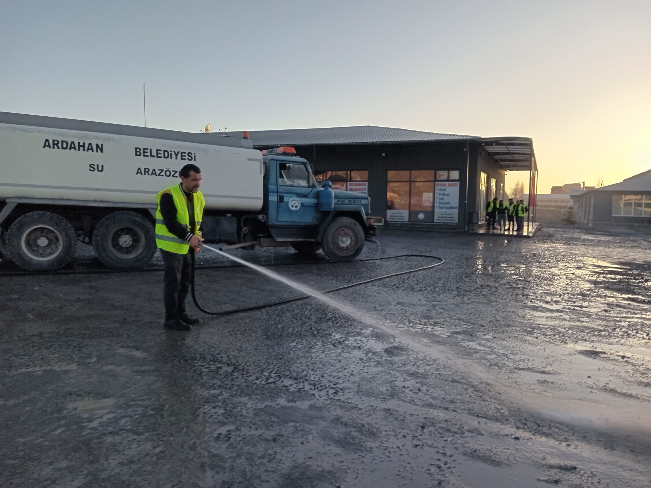 Kar yağışı ve soğuk hava sonrası güneşin yüzünü gösterdiği Ardahan’da belediye ekipleri de temizlik çalışmalarına kaldığı yerden devam etti. Yıkama araçları ve işçilerle yürütülen temizlik çalışmalarında adresler bu defa otogar bölgesi ve lise caddesiydi.