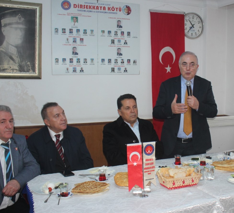 Dirsekkaya köyü kahvaltı proğramı. Dernek başkanı. Gürsel görmüş: Konuklara hoşgeldiniz, teşrifleriniz Köyüm adına bizleri onurlandırmıştır dedi.