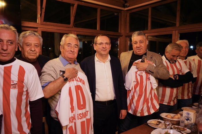 “Kırmızı-beyazlı formayı giyip, yıllarca Ayvalık ve Ayvalık halkının gururu olabilmek için ter döken Volsvogen Aytekin Erhanoğlu, kaleci Güngör Sezer, Adalı Veli, Kadri Karayıldız, Antalyasporlu Osman Arslan, Fevzi Kezan ve efsane kadrodan kaptan Hasan, Raci, Stoper bankacı Rıza, Çacan Hasan, Tenten Melih, Hüdai, Murat Taş, Dingin Metin, Alex, Flaş Metin, Bahariye Mehmet, kaleci Rıza, Ercan, Mustafa Seymen, Mayer Mustafa, Kral İsmet, Sait, Sarı Nagip, Hasip, Kaleci Akın, Gömecli Hasan Alumert, Topuk Atilla ve ismini sayamadığımız niceleri…. Kısaca burada bulunan ve hayatta olan Ayvalıkgücü’nün efsanevi yıldızlarını da sevgi dolu saygılarımla selamlıyor, aramızdan ayrılan efsanelerimizi de saygı ve rahmetle anıyorum. Sporun tek yürek ve tek vücut haline getirdiği birlik ve beraberlik hislerini yaşattığı, günümüzde en çok ihtiyaç duyduğumuz dayanışma ve kardeşlik duygularının en somut örneklerini bizlere miras bırakan efsane oyuncularımızın da şeref verdiği bu gecede sizlerle birlikte bir bütünün parçası olmaktan büyük gurur duyduğumu özellikle ifade etmek istiyorum. Bu duygularla yıllar sonra yeniden bir arada olup, anılarımızın tazelendiği, pek çoğumuzun özlemle yâd ettiğimiz o yıllara yeniden götüren böylesi bir geceye göstermiş olduğununuz yoğun katılım için sonsuz şükranlarımı sunuyor, gecenin hazırlanmasında başta Cemal Erhanoğlu olmak üzere emeği geçen herkese teşekkür ediyorum”