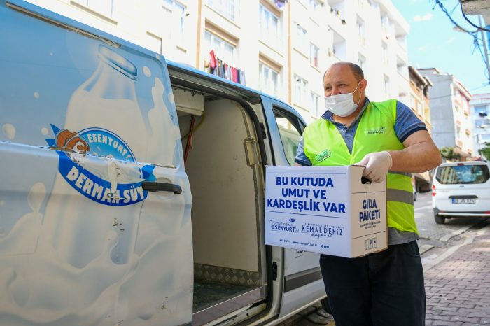 Esenyurt Belediyesi, ilçe genelindeki ihtiyaç sahibi vatandaşlara yardımlarını sürdürüyor. Daha önce de gıda kolisi, süt, patates, soğan gibi gıda ürünlerini vatandaşlara ücretsiz olarak dağıtan Esenyurt Belediyesi, Ramazan Ayı’nda da aileleri yalnız bırakmıyor. Gıda kolileri, Sosyal Yardım İşleri Müdürlüğü ve Tarımsal Hizmetler Müdürlüğü bünyesinde kurulan Gıda Muayene Komisyonu tarafından yapılan teknik ve hijyenik kontrollerin ardından yapılan sosyal incelemeler sonucu, ihtiyaç sahibi vatandaşlara ulaştırılıyor. Ekipler, içerisinde bakliyat, tahıl ürünleri gibi temel gıda malzemelerinin bulunduğu yardım kolilerini, ihtiyaç sahibi vatandaşların adreslerine teslim ediyor.