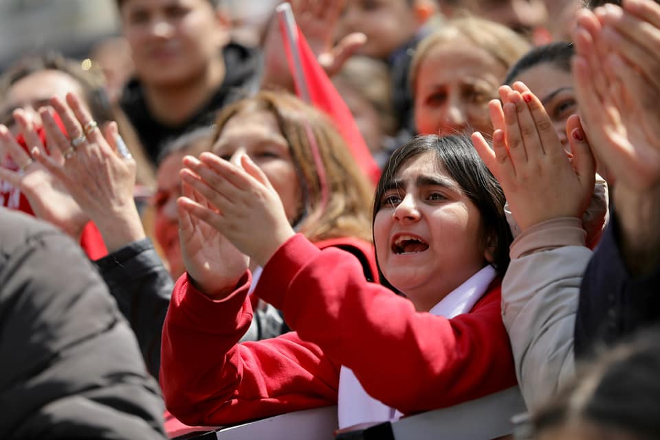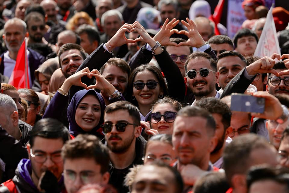 “Onlar, 2019’dan bugüne, hiç değişmediler. Ama bizim birliğimizi ve bütünlüğümüzü bozmaya çalışıyorlar. Bir olacak mıyız? İri olacak mıyız? Diri olacak mıyız? Akıllı olacak mıyız? Bunlara fırsat vermeyeceğiz, öyle değil mi? Onların gözünün gördüğü tek şey, çıkarları; bizim derdimiz, milletimiz. Dolayısıyla bir avuç israfçıya ve rantçıya fırsat vermeden, biz, vicdanlı, mert ve akıllıca, ahlaklıca, erdemlice bir döneme hazırlık yapıyoruz. Hep birlikte kazanmaya hazır mıyız? 31 Mart’ta mertlik kazanacak doğru mu? 31 Mart’ta particilik değil, birlikte, bir partinin değil, halkın zaferi olacak, tamam mı? Esenyurt, bunun en büyük yeri olacak. Tamam mı Esenyurt? Harika. Bu şehre, başta Esenyurt’a, ihanet ve zulüm edenleri, vatandaşı ayrıştıranları, biz bu 31 Mart’ta hep birlikte tarihe gömeceğiz. Hoşgörü ve kardeşlikle beraber kazanacağız. Yaşar Kemal ne diyor? Diyor ki; ‘Bir toplum, hoşgörüsü kadar güçlü, sağlam haklıdır, zulmü kadar zalim ve zayıftır.’ Onlar zulümleriyle bu şehri, bu ülkeyi, bu milleti zayıflatanlardır. Bir avuç zalim kaybedecek, halkın hoşgörüsü kazanacak. Halkın vicdanı kazanacak. Vicdan ittifakı kazanacak.”