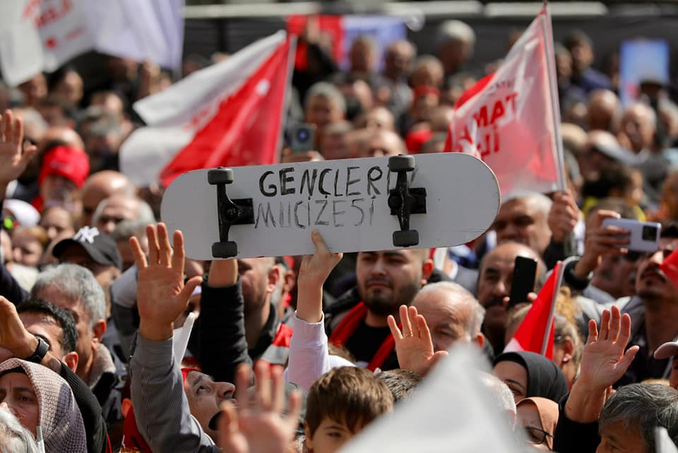 Alanı dolduran ve kendisine sevgi gösterilerinde bulunan coşkulu kalabalığın ellerinde yükselen yaratıcı dövizleri tek tek okuyan İmamoğlu, “’İstanbul’a yakıştı Trabzon’un evladı’, ‘İstanbul’da İmamoğlu Esenyurt’ta Ahmet Özer’, ‘İstanbul’un muhafızısın.’ İstanbul’un muhafızı, bütün İstanbul. Öyle değil mi? İstanbul’un haklarını koruyacak mıyız? Hak yemeyeceğiz, kimsenin hakkını da yedirmeyeceğiz. ‘Tam yol ileri’ diyor sevgili kızım benim. Aferin sana. ‘Başkanım evimiz riskli.’ Kesinlikle bu zor durumları biz çözeceğiz Gazi Mahallesi. ‘Kabine İmamoğlu’na karşı.’ Kabine kim? Ben tanımıyorum. Ha şu Ankara’dan gelen 17 arkadaş. Tamam, pardon, çıkaramadık pardon. ‘Sen mecnun ol, İstanbul zaten Leyla olur.’ Vallahi coşmuşsun Yeşilkent gençliği. Helal olsun sana” paylaşımlarında bulundu.