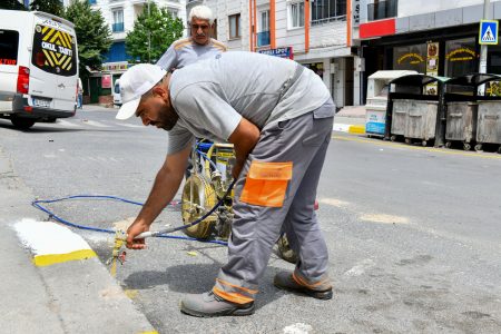 Ekipler, İstiklâl Mahallesi Büyük Ayazma Caddesi’nde bordür boyama çalışmalarına devam ediyor.