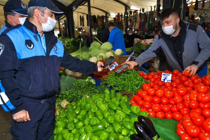 Esenyurt Belediyesi zabıta ekipleri, salgın riskine karşı vatandaşın sağlığı için pazar yerlerinde denetimlerini artırdı. Vatandaşları Koronavirüs’e karşı korumak, maske ve sosyal mesafe gibi tedbirlerin uygulanmasını sağlamak için ilçe genelinde denetim yapan ekipler, pazar esnafının HES kodlarını sorguladı. HES kodu olmayan esnafa uyarıda bulunarak, HES kodu almalarını sağlayan ekipler, esnaf ve vatandaşları maske, sosyal mesafe ve hijyen konusunda da bilgilendirdi.