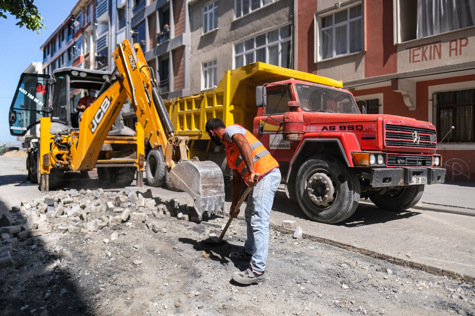 Program dâhilinde, Namık Kemal Mahallesi 18. sokakta parke yol çalışması yürüten ekipler, bu süreçte cadde, sokak ve kaldırımların tadilatlarını yaparak, Esenyurt’luların kullanımına hazır hale getiriyor.