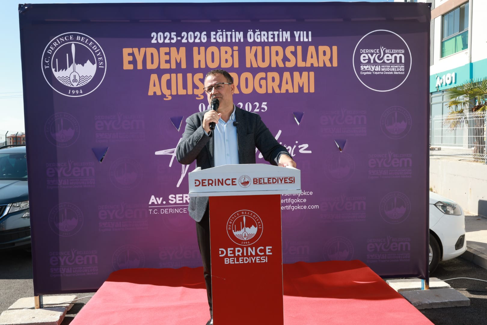 Başkan Gökçe, konuşmasında yeni EYDEM binası ile ilgili müjde vererek, “Çok büyük bir aksilik olmazsa 3 Aralık’ta yeni Engelsiz Yaşama Destek Merkezi’nin temelini atacağız. Biliyorsunuz devletimizin asıl amacı özel gereksinimli çocuklara ve dezavantajlı gruplara daha çok sahip çıkmak. Biz de bu bakışı açısı içerisinde hayırlı bir işadamımızın katkılarıyla 3 Aralık’ta yeni binamızın temelini atacağız. Üç kattan oluşan içerisinde hobi bahçesinden tutun da dinlenme odalarına kadar bir çok donatıyı barındıracak bu merkezimiz Derince’mizin çok önemli bir eksiğini giderecek” dedi. Başkan Gökçe’nin konuşmasının ardından açılışı yapılan hobi kurslarında eğitim dönemi boyunca resim, koro, ritim, el sanatları, ebru, halk oyunları, okuma – yazma, drama, spor, takı tasarım, işaret dili ve bilgisayar eğitimleri verilecek.