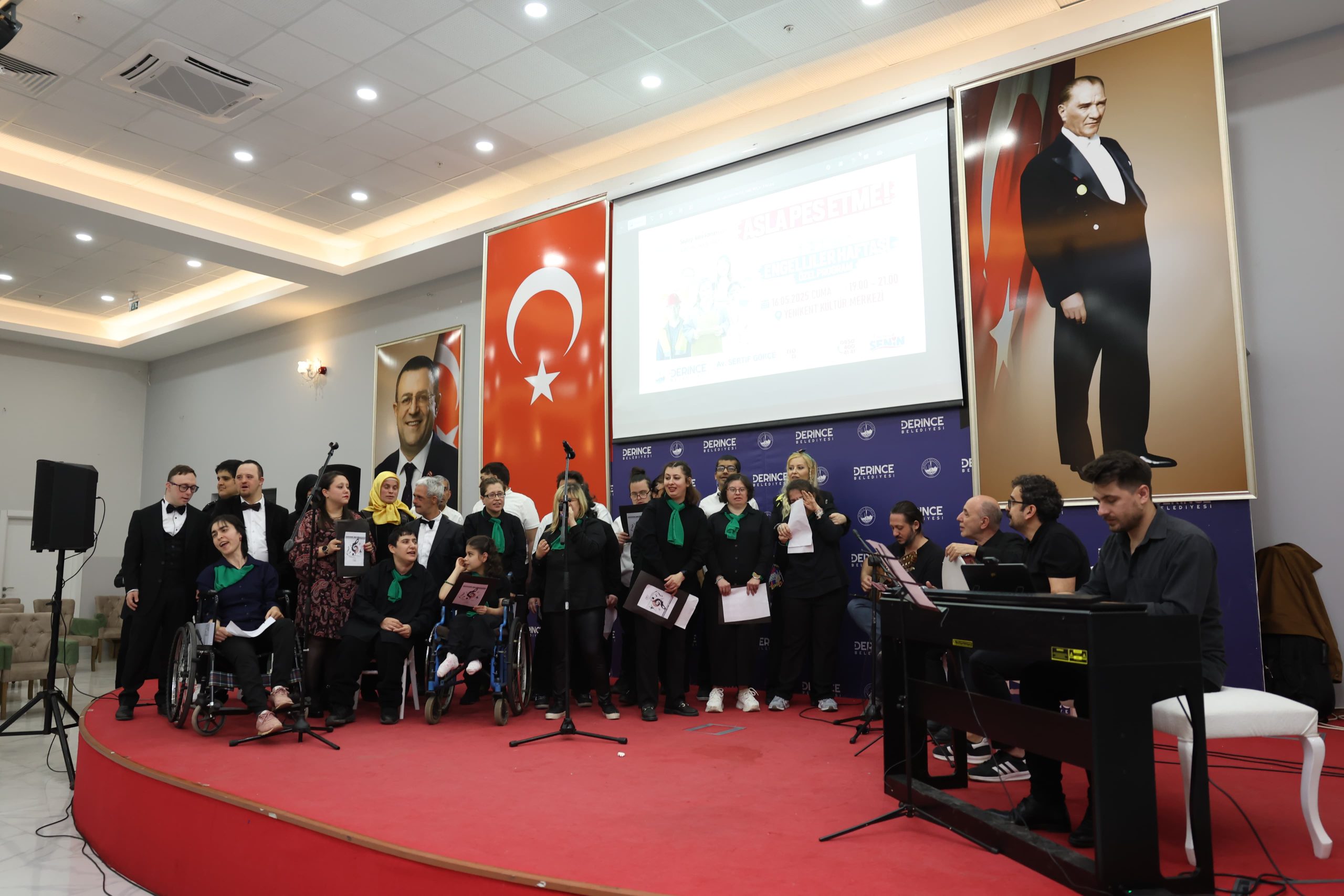 Derince Belediyesi 10-16 Mayıs Engelliler Haftası dolayısıyla Yenikent Kültür Merkezi’nde ‘Asla Pes Etme’ temasıyla bir program tertip etti. Engelsiz Yaşama Destek Merkezi (EYDEM) öğrencilerinin sahne aldığı etkinlik Derince Belediye Başkanı Av. Sertif Gökçe’nin ev sahipliğinde gerçekleşti. Bu önemli organizasyona Başkan Gökçe’nin yanı sıra belediye başkan yardımcıları, muhtarlar, belediye meclis üyeleri, sivil toplum kuruluşlarının başkanları ve yöneticileri, EYDEM’de eğitim gören öğrenciler ve velileri ile çok sayıda vatandaş katılım sağladı.