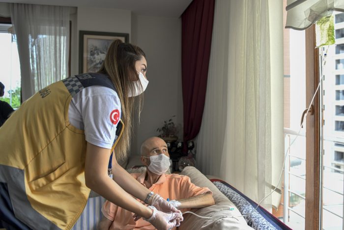 Esenyurt Belediyesi Sağlık İşleri Müdürlüğünün, ücretsiz olarak verdiği Evde Sağlık hizmetiyle ilçede yaşayan hasta vatandaşlar, evlerinde tedavi edilmeye devam ediyor. Bu kapsamda, 7 gün 24 saat boyunca hizmet vermeye başlayan birimden faydalanan hasta sayısı da önceki yıllara göre artış gösterdi. Hizmet kalitesini artırarak çalışmalarını sürdüren Evde Sağlık Hizmetleri birimi, sadece Eylül ayında gündüz 617 gece ise 370 vatandaş olmak üzere toplam 987 vatandaşı evde tedavi etti. Esenyurt Belediye Başkanı Kemal Deniz Bozkurt’un talimatlarıyla Pandemi sürecinde yatağa bağlı, yaşlı ve hasta vatandaşları yalnız bırakmayan birim, 2020 yılı içerisinde ise destek talebini ileten, 4 bin 739 hastaya aynı gün içerisinde dönüş yaparak, sağlık teknikerleri aracılığıyla serum, iğne ve pansuman gibi sağlık hizmetlerini ücretsiz olarak sundu. Evlere yapılan ziyaretlerde steril kıyafetler giyen ekipler, ayrıca hastalara ilaç kullanımı, hijyen kuralları, yeme-içme alışkanlıkları gibi çeşitli konularda bilgilerde veriliyor.