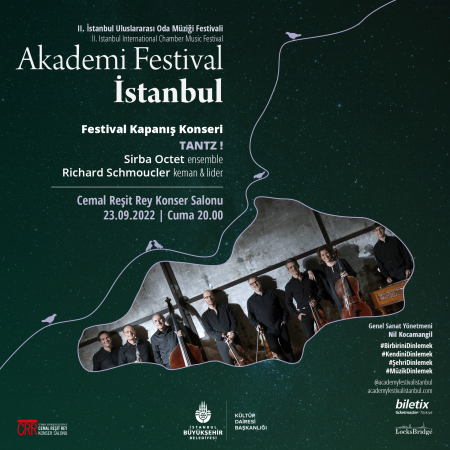Keman sanatçısı Richard Schmoucler, klasik batı müziği ve geleneksel Doğu Avrupa halk müziğini birleştiren bir topluluk oluşturmak amacıyla 2003 yılında; Orchestre de Paris, Orchester National de France ve Orchester de l’Opéra de Paris’ten müzisyenler ve cimbalom sanatçısı Cyrille Lehn’i bir araya getirerek kurulan Sirba Octet, müzik türlerini ustalıkla harmanlamalarının yanı sıra, halk enstrümanlarını geleneksel özelliklerinden sıyırarak dinleyicilere bambaşka bir deneyim sunuyor. Grubun “Tantz!” isimli, beşinci albümlerinin konseri II. İstanbul Uluslararası Oda Müziği Festivali’nin kapanışında yer alıyor. Doina, Hora ve Sirba’nın geleneksel temalarıyla karakterize edilen parçalarla “Tantz!”; dinleyicileri folklorik öğeleri içinde barındıran müzikleriyle eğlenceli bir deneyime davet ediyor. Sirba Octet, 20. yılı turnesi kapsamında II. İstanbul Uluslararası Oda Müziği Festivali’nin kapanış konseri için Türkiye’de ilk kez dinleyicilerle buluşacak.